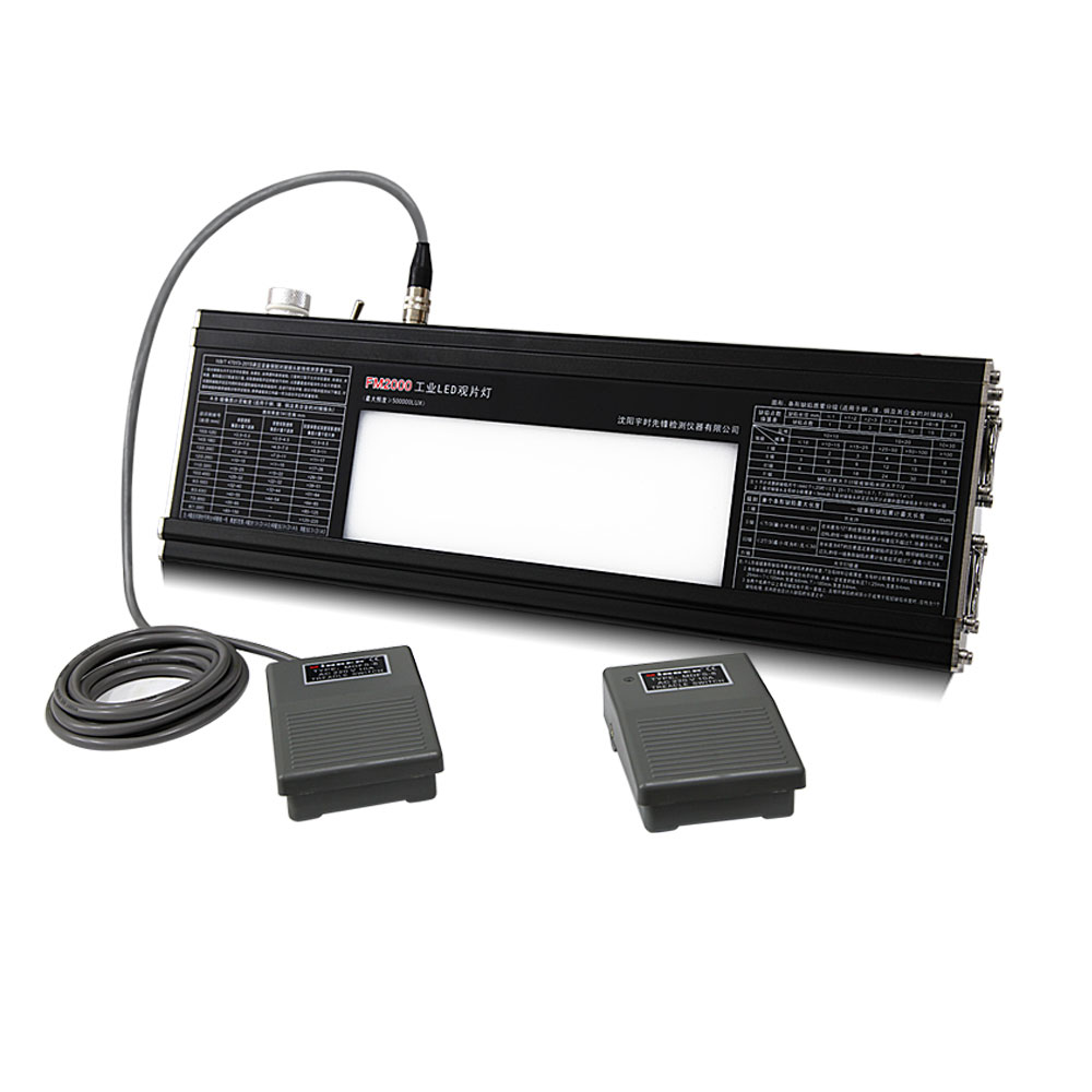 FM2000工业LED观片灯,280颗LED灯珠,克服了传统荧光灯观片灯亮度低,对比度差,衰减快的缺点,而研制出来的一款,亮度上限可达50万LUX以上可观察底片黑度4.5D.符合NB/T47013-2015《承压设备无损检测》,GB/T19802-2005《工业射线照相底片观片灯》标准。